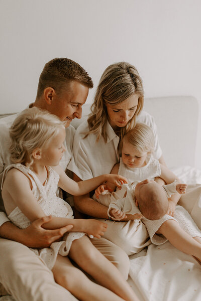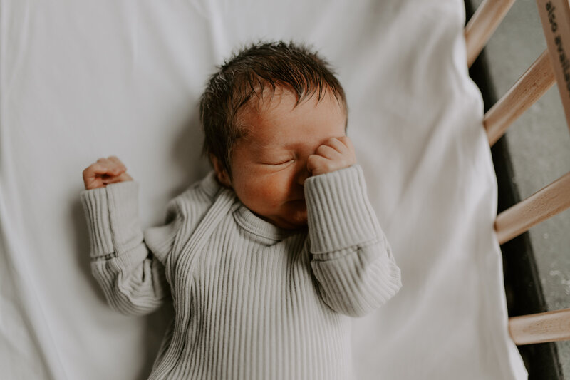 Aaaah, the classic one! Partners (en dan heb ik het over mannen) staan meestal niet te springen voor een fotosessie. Ze hebben het standaard beeld van te geposeerde foto's in hun gedachten. Maar dat is bij mij niet het geval. Alle gezinnen die ik al fotografeerde, hadden meestal nog nooit voor de lens gestaan. Dus ik ben het wel gewend. Tijdens een newborn shoot heb je vooral oog voor je pasgeboren baby (en peuter als die er al is) en heb je amper door dat ik foto's aan het maken ben. Het zal vooral heel gezellig worden!